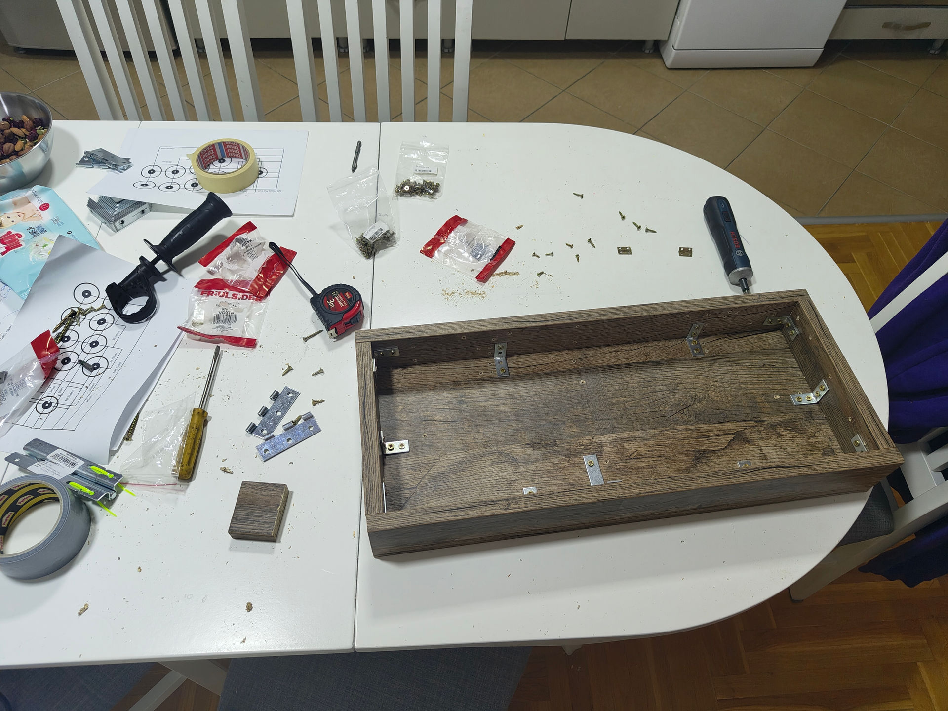 - Cutting and assembly process: All of the wood cutting edge banding was done proffesionally at my local hardware store Centrum.